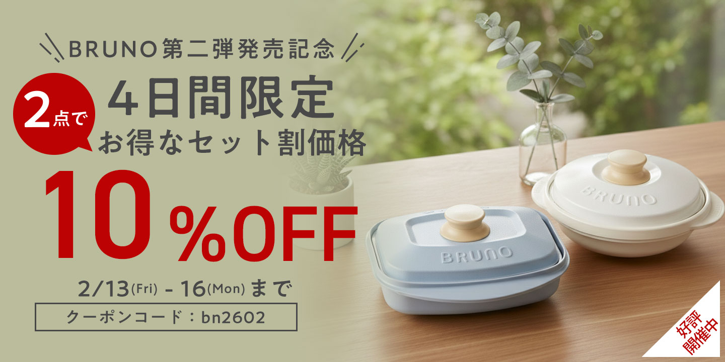クーポンコードをご注文画面でご入力いただくと、BRUNO 2サイズセットがお得にご購入いただけます。