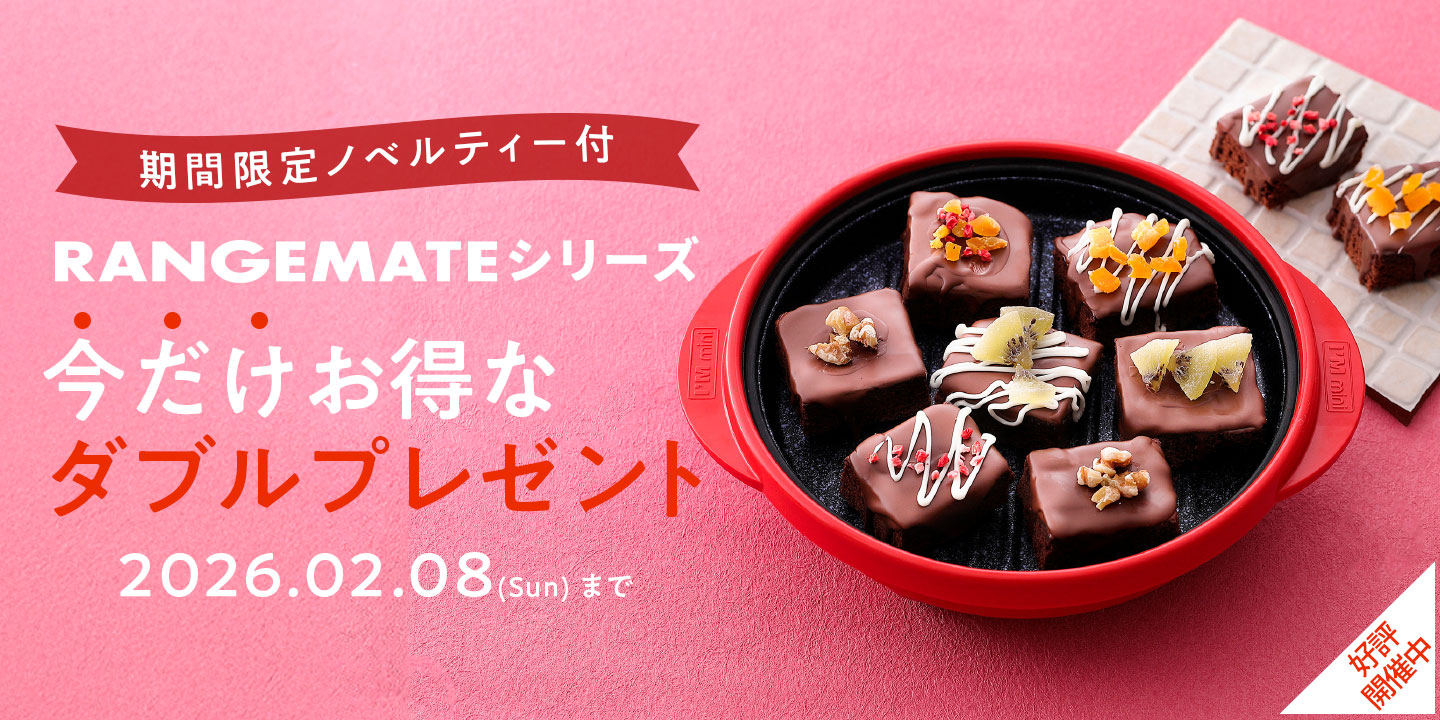 | ノベルティプレゼント | 対象商品をご購入の方に、先着順でオリジナルジッパーバッグをプレゼント! 【対象商品】 レンジメート プロ / レンジメート マグポット / レンジメート プロ バイ ブルーノ / レンジメート プロ スクエア バイ ブルーノ レンジメート プロ バイ ブルーノ 2サイズセット / 公式フル活用レシピ本付き レンジメートプロ 特別セット |