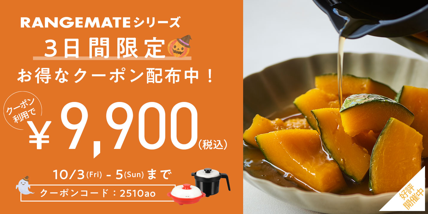 クーポンコードをご注文画面でご入力いただくと、レンジメートシリーズがお得にご購入いただけます。