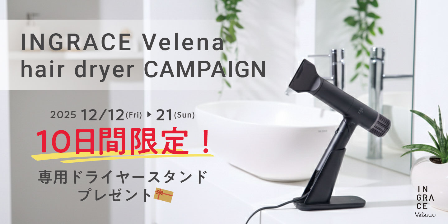 条件:INGRACE Velena hair dryerをご購入時に使用可能 / 会員の方おひとり様1回限り