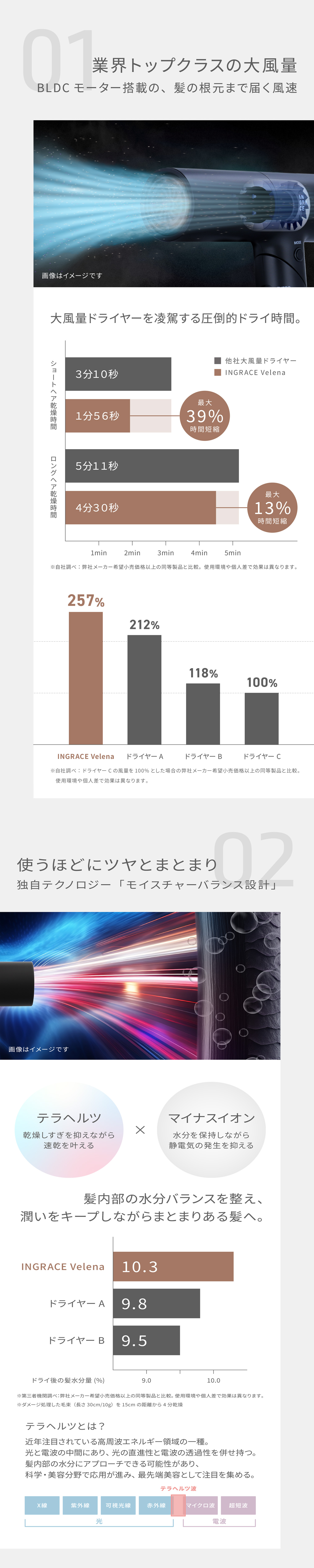 テラヘルツで、乾燥しすぎを抑えながら、速乾を叶えます。